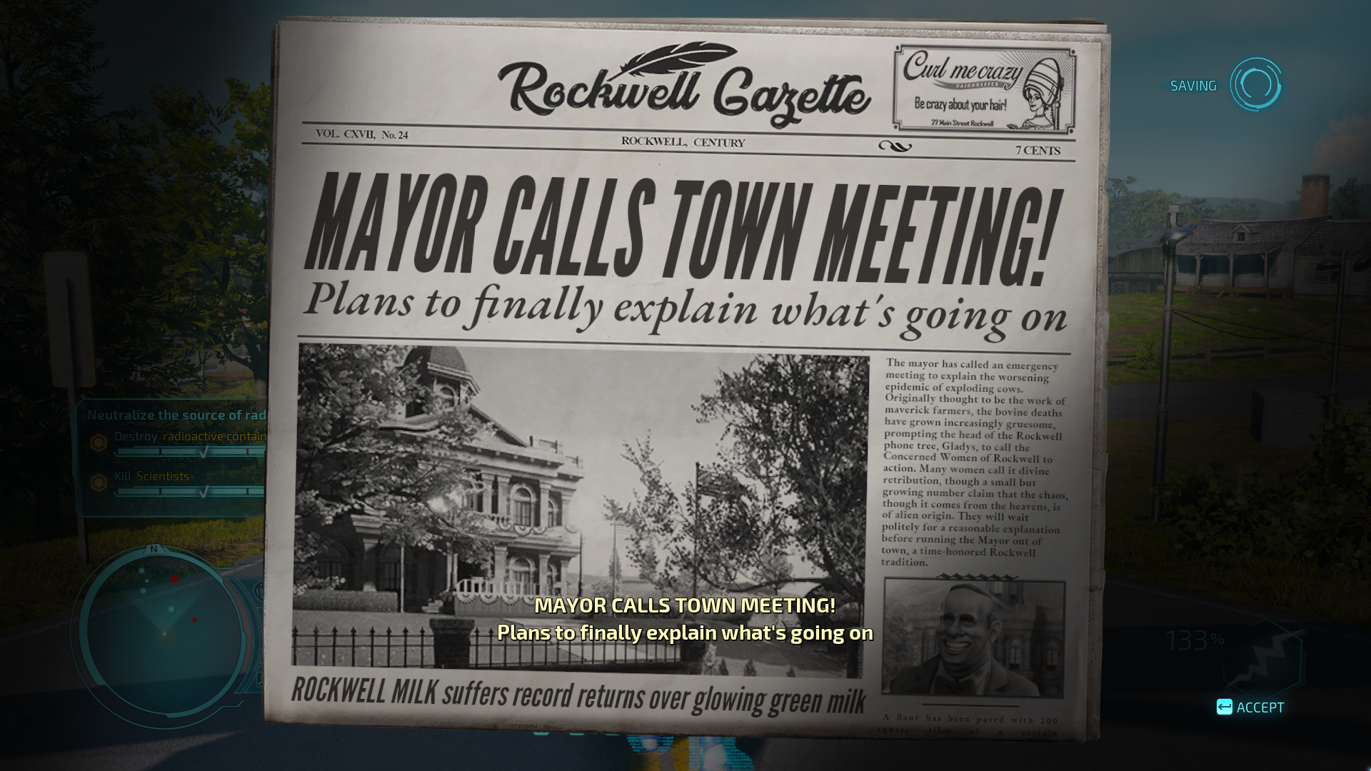 Aktuální snímek počítačové hry + Destroy All Humans! (GOG.com) + pochází z mého vlastního počítače.