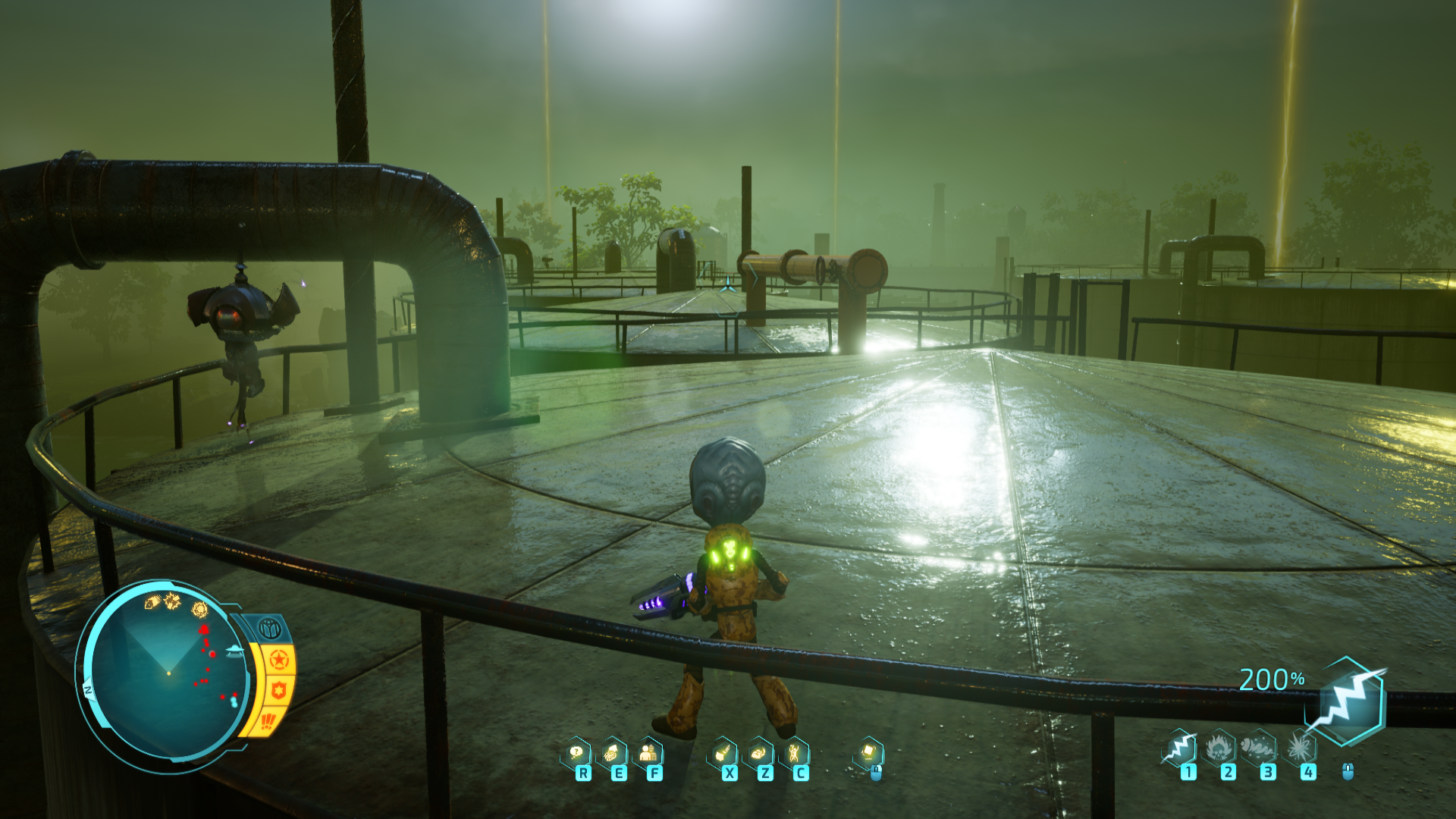 Aktuální snímek počítačové hry + Destroy All Humans! (GOG.com) + pochází z mého vlastního počítače.