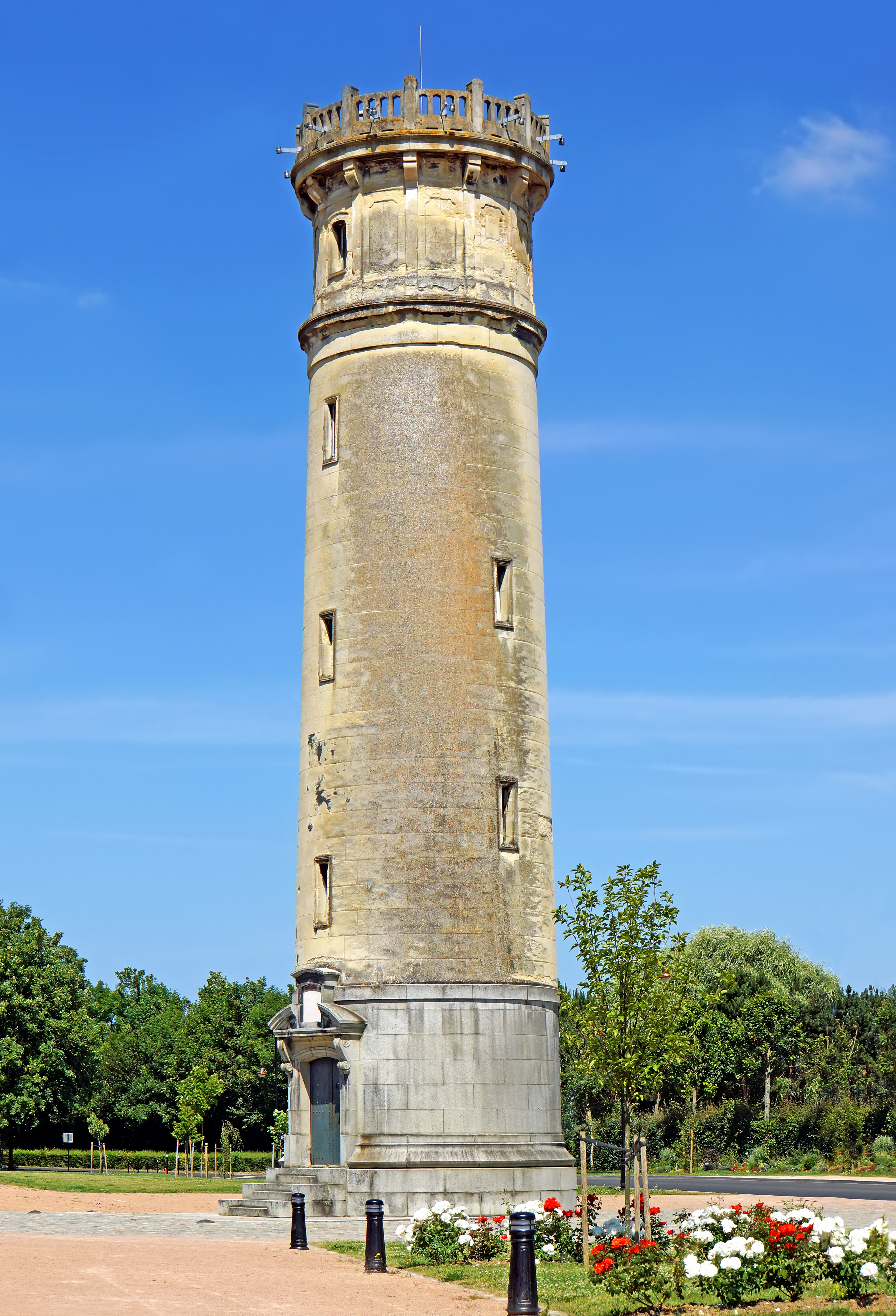 • Inactive since 1908. 25 m (82 ft) unpainted round masonry tower with gallery; lantern removed. Built at the edge of the estuary near the hospital, the lighthouse now stands some distance from the shore, apparently because land has been filled since it was built. It was replaced by the Falaise des Fonds lighthouse in 1908. In 1886, the lighthouse was the subject of a well-known pointillist (to paint small dots) painting by Georges Seurat. Located on the D513 highway at the northwest edge of Honfleur.
