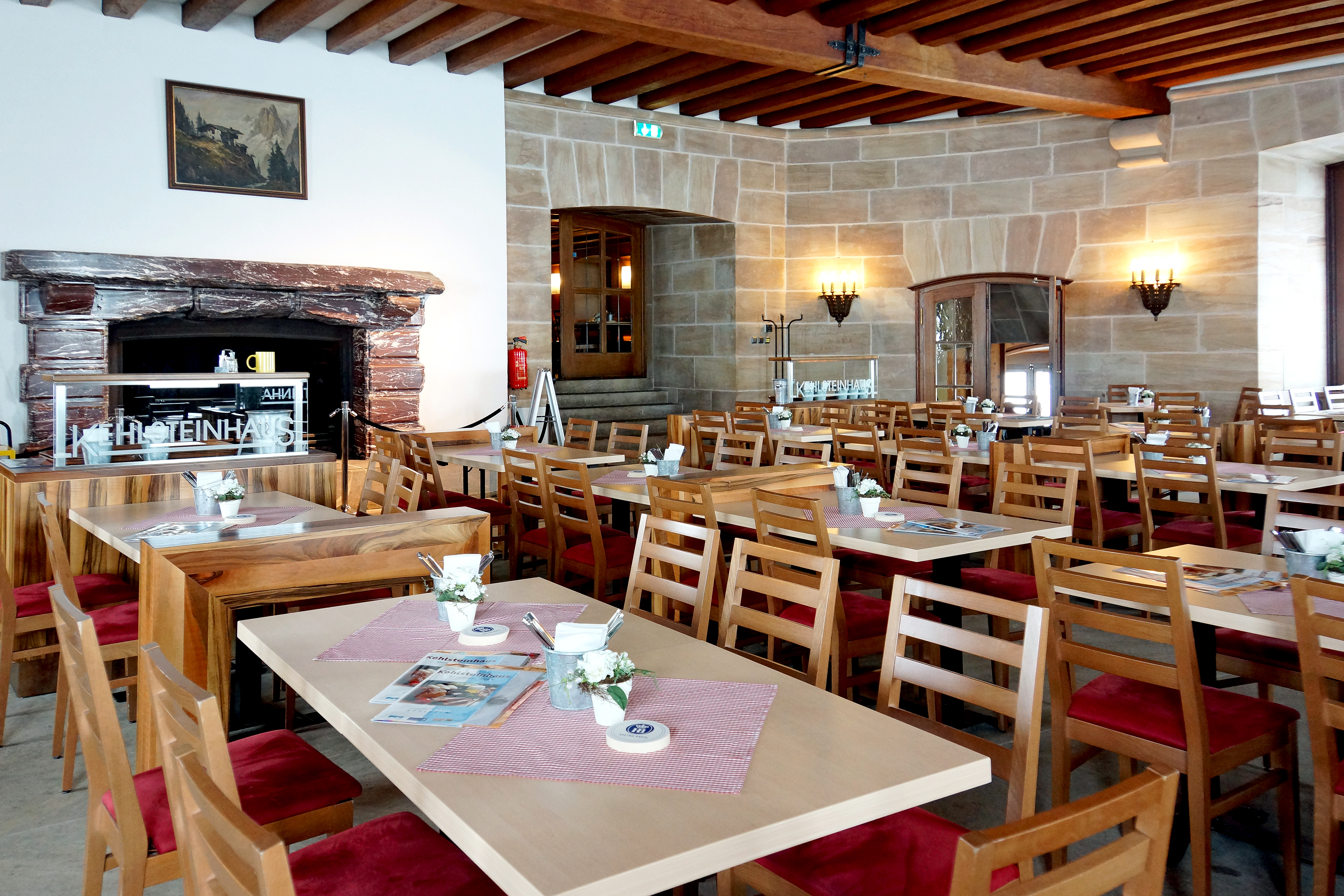 - The red marble fireplace that Mussolini gave to Hitler is still there, minus some pieces chipped off by souvenir hunters.