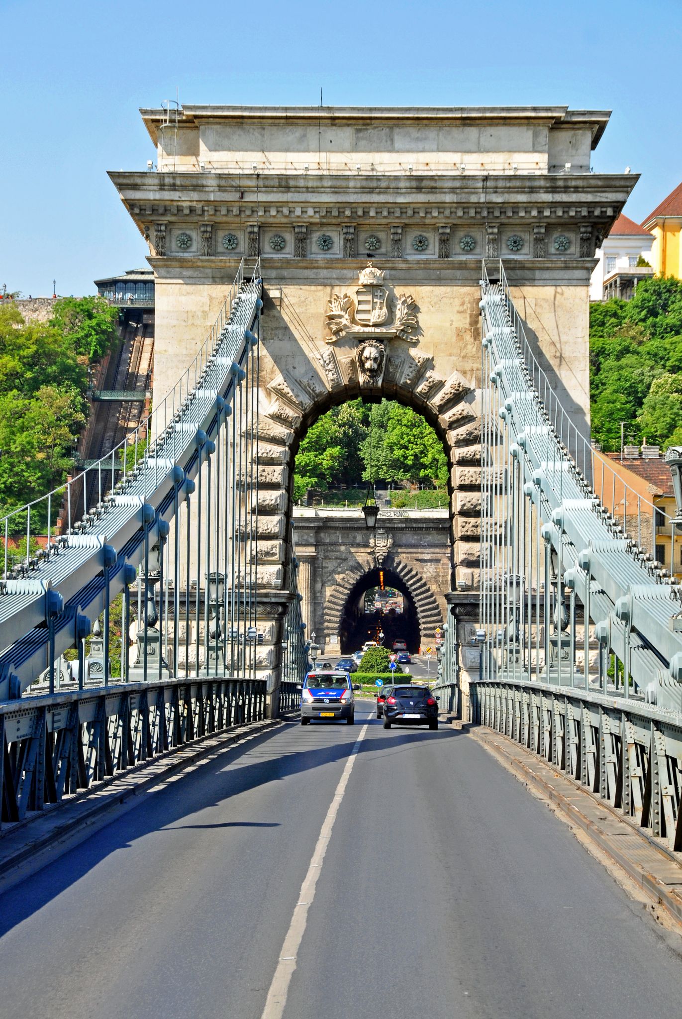- Heading for Castle Hill by crossing the Chain Bridge. There is a tunnel under Castle Hill (straight ahead) to provide easy access to places in Buda behind the hill. The tunnel is exactly the same length as the Chain Bridge. According to a popular anecdote, when it rains the bridge can be pushed into the tunnel to prevent it from getting wet.