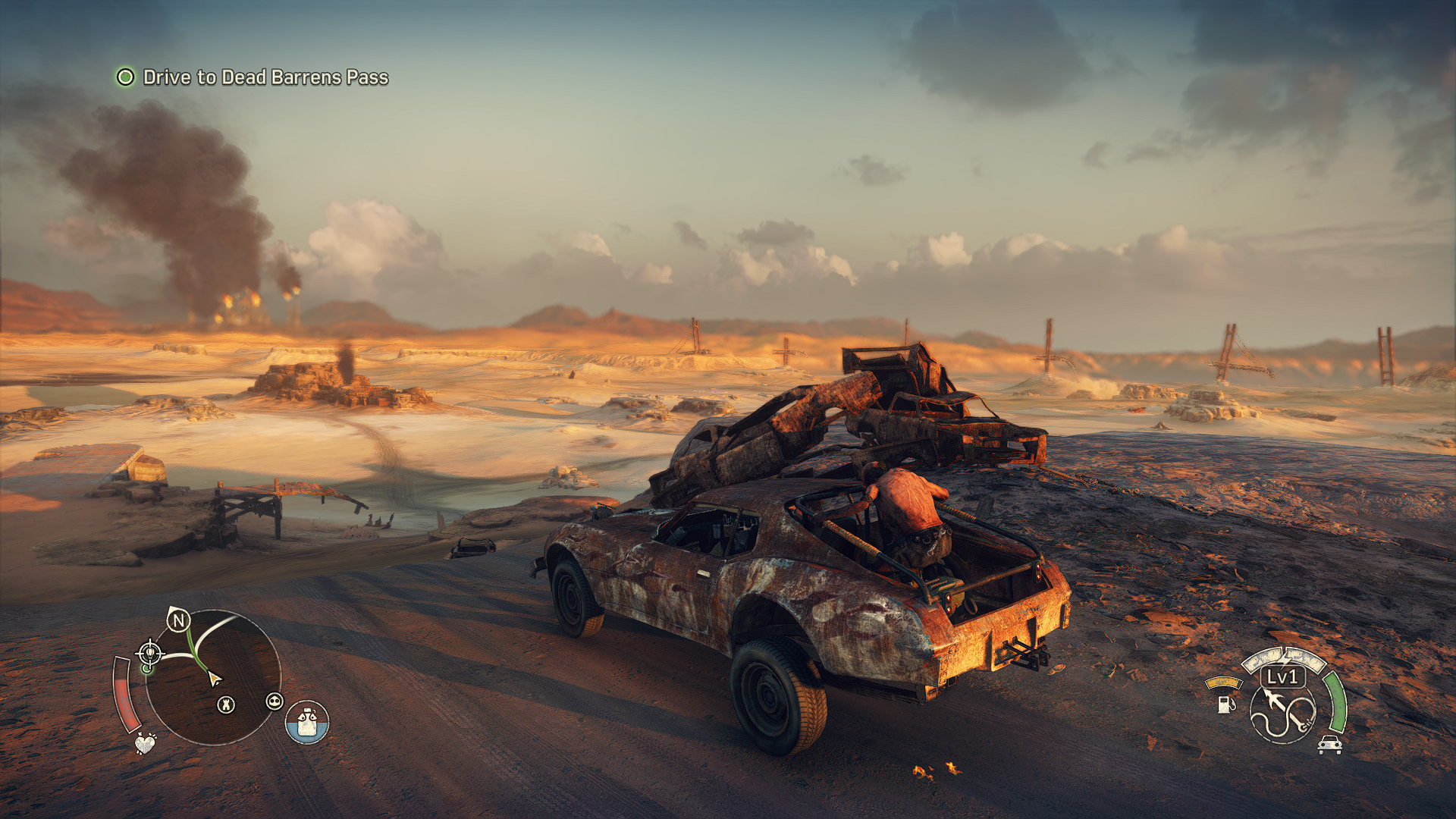 Aktuální snímek počítačové hry + Mad Max (2015, GOG.com) + pochází z mého vlastního počítače.