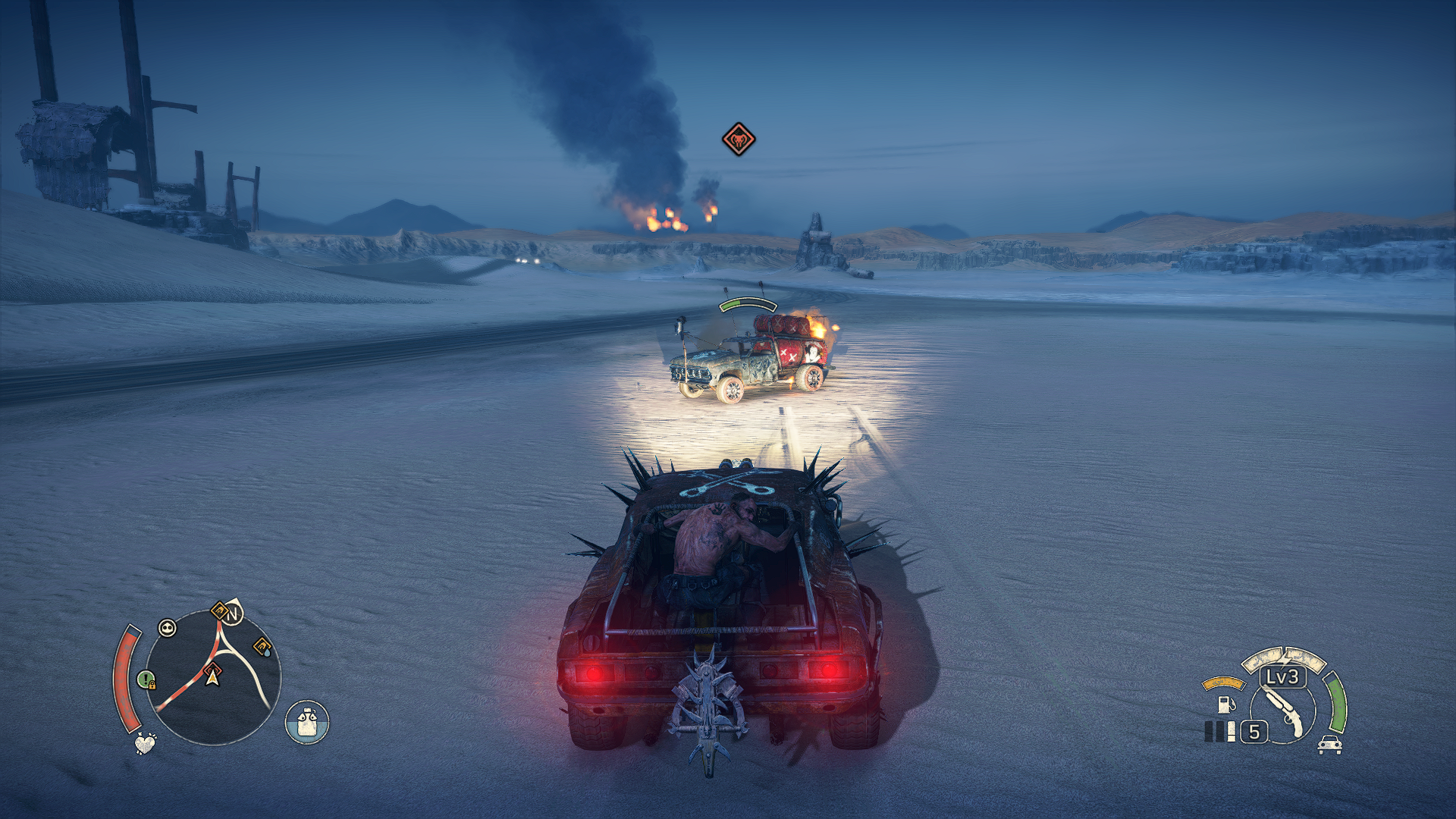 Aktuální snímek počítačové hry + Mad Max (2015, GOG.com) + pochází z mého vlastního počítače.
