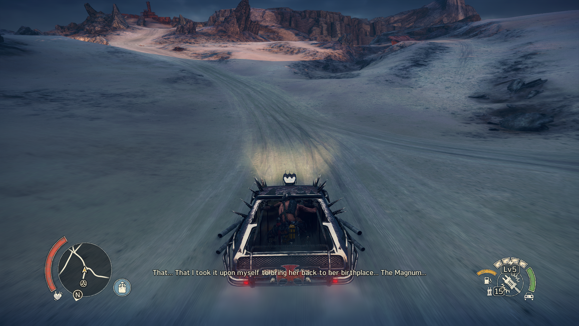 Aktuální snímek počítačové hry + Mad Max (2015, GOG.com) + pochází z mého vlastního počítače.