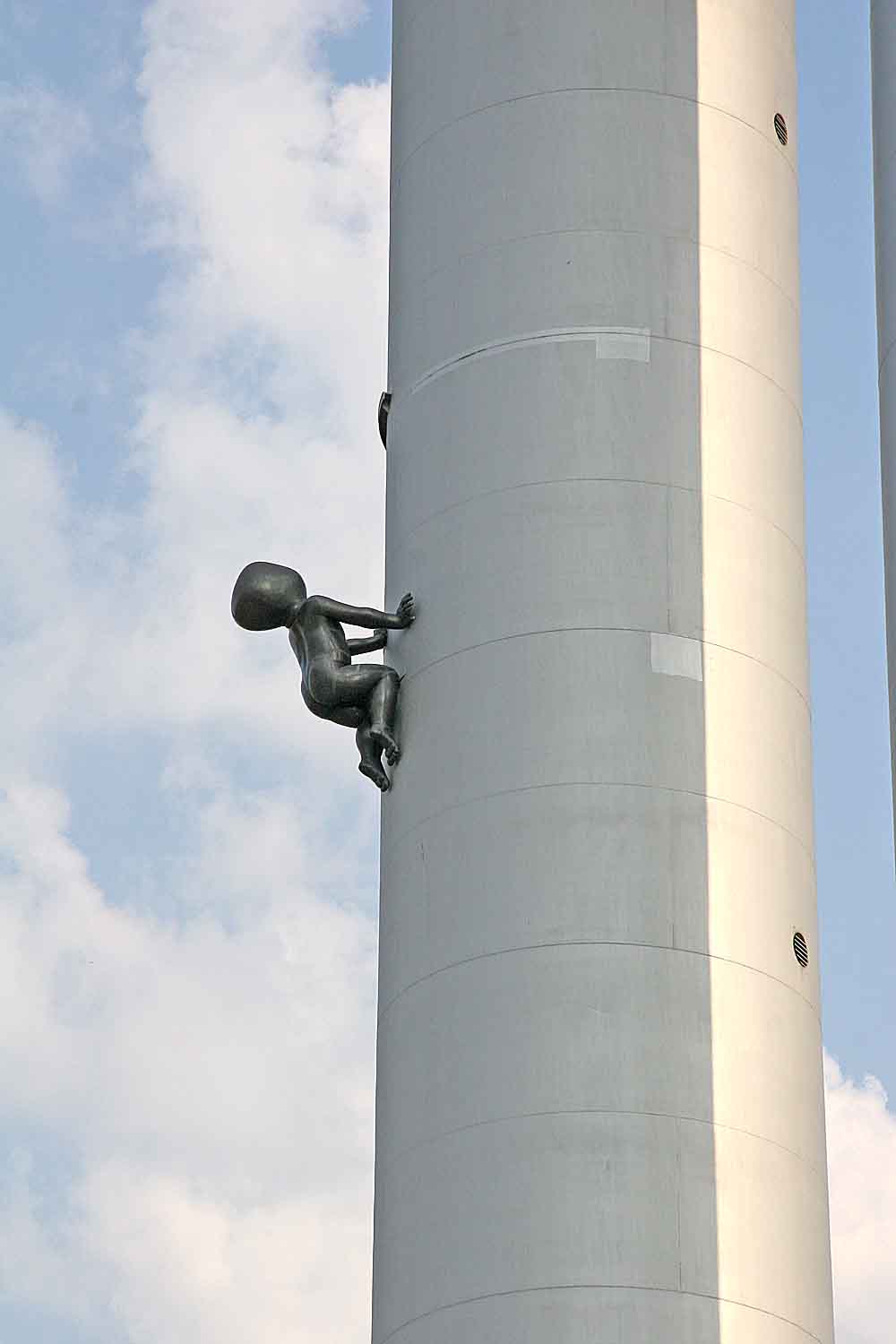 - Polski: Rzeźba dziecka wspinającego się na wieżę telewizyjną.