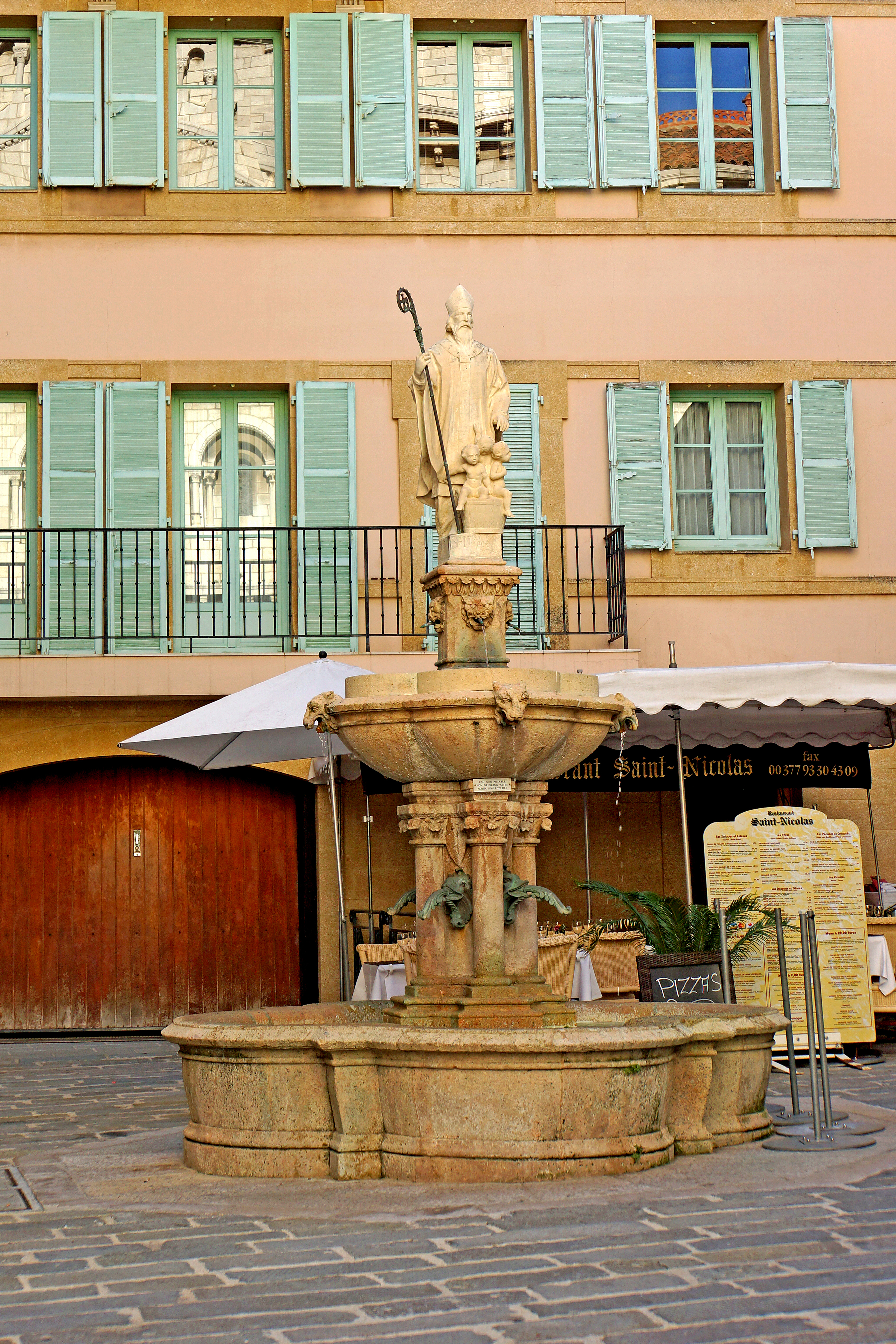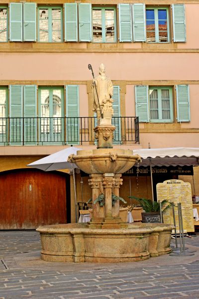 • The statue of St. Nicolas is the fountain centerpiece in St. Nicolas Square, standing in front of the Cathedral of the Immaculate Conception with St. Nicolas and St. Benoit. The statue is by Bassignani.