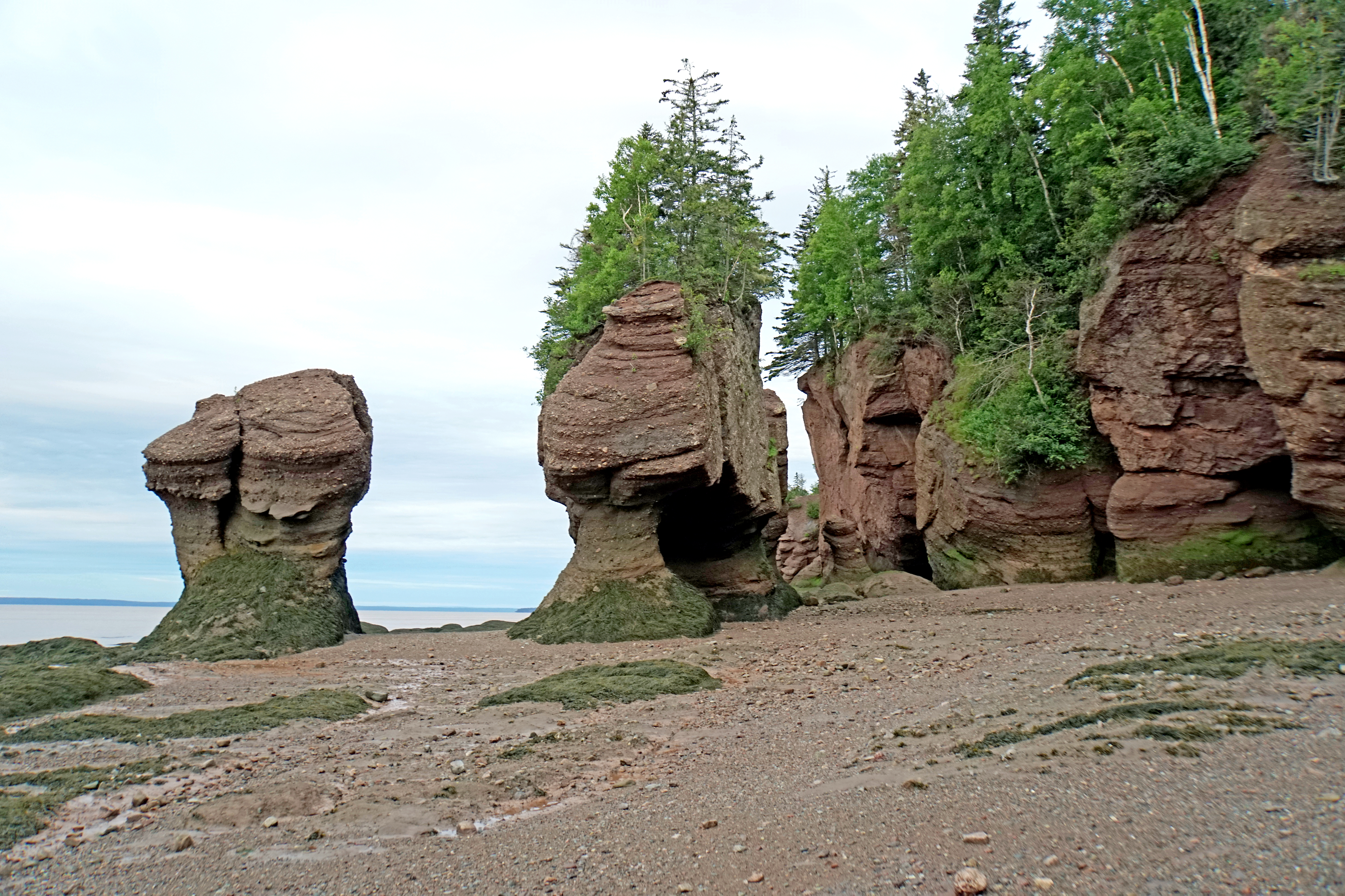 • They are located on the shores of the upper reaches of the Bay of Fundy at Hopewell Cape. Due to the extreme tides of the Bay of Fundy, the base of the formations are covered in water twice a day.