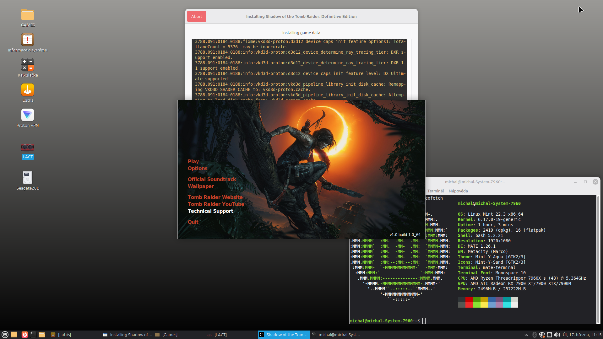 - Czech: Aktuální verze Wine je natolik výkonná a stabilní, že dlouhé hraní špičkové hry Shadow of the Tomb Raider není žádný problém !