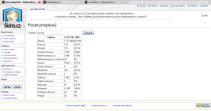 Poznámka: Ačkoliv jsem rozšíření + Speciální:Editcount + nainstaloval primárně kvůli přihlášce svého Rekordu do Guinness World Records...jeho potenciál v našem Katalogu firem je opravdu značný.