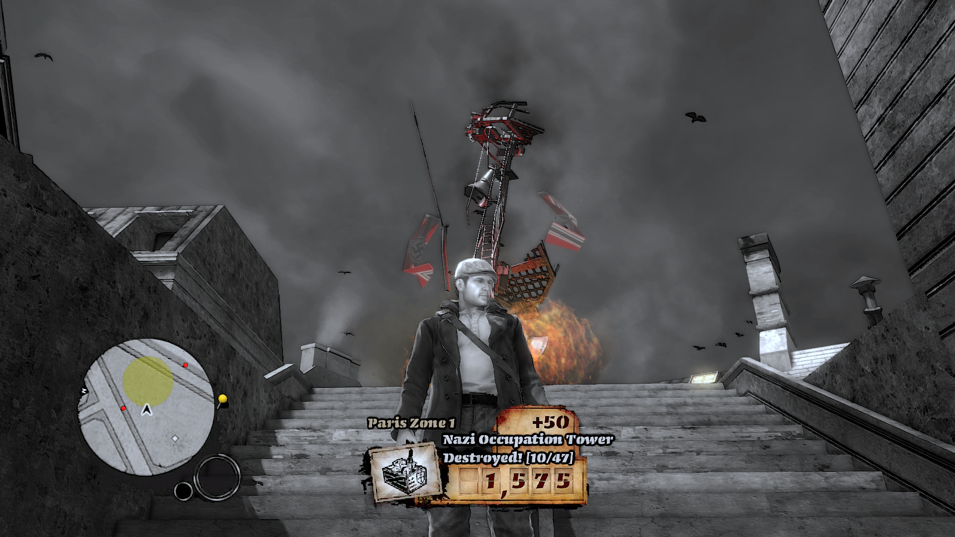 Aktuální snímek počítačové hry + The Saboteur (GOG.com) + pochází z mého vlastního počítače.