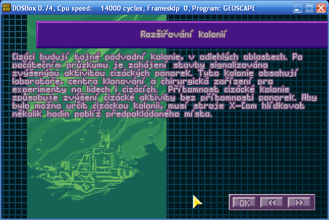 Aktuální snímek počítačové hry + X-COM: Terror from the Deep (v emulátoru DOSBox 0.74) + pochází z mého vlastního počítače.